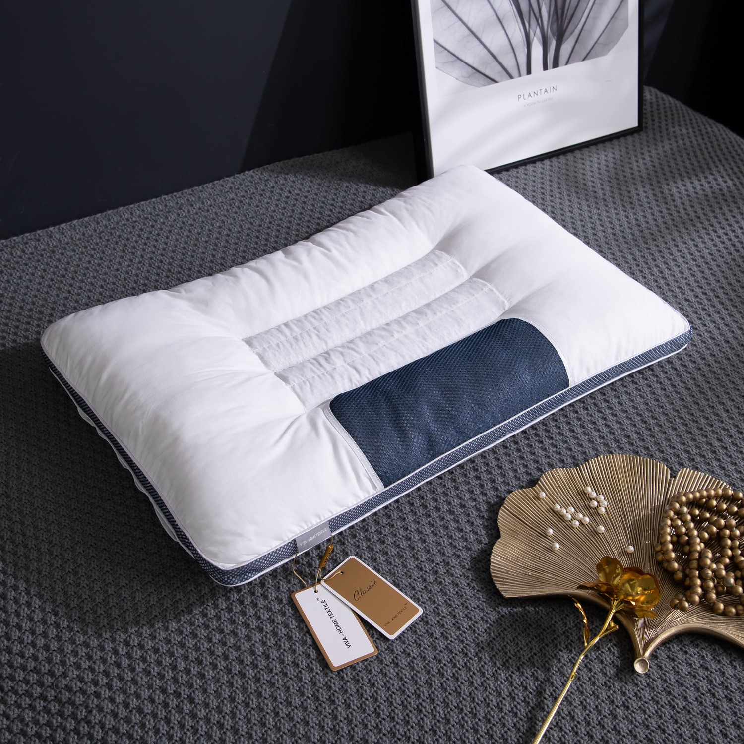 Комфортная подушка, отлично подходящая для профилактики проблем с осанкой и позвоночником, которые также оказывают влияние и на качество сна. Главной особенностью данной подушки является отсек подушки с семенами кассии, которые оказывают массажное действие, что благоприятно сказывается на кровообращении сосудов головного мозга и шейного отдела позвоночника. Чехол имеет натуральный состав, отсюда хорошая воздухопроницаемость и гипоаллергенность, а мягкая фактура обеспечивает приятные тактильные ощущения. Также в подушке присутствует микросетка, которая является одновременно дизайнерским решением и обеспечивает хорошую циркуляцию воздуха во время сна.