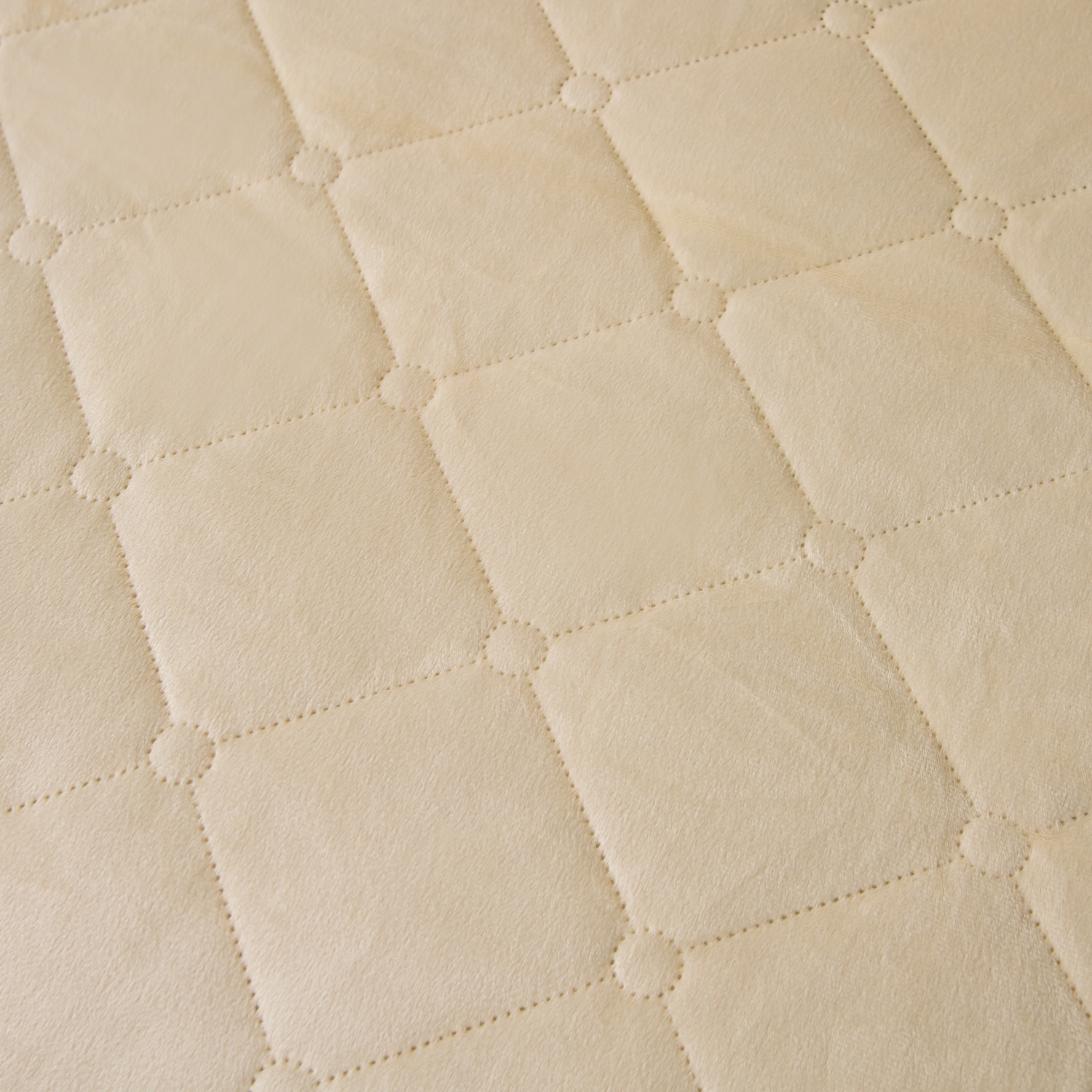 Покрывало украшено стежкой "Ромб" с металлизированной нитью, что подчеркнёт стиль постели и окружающего её пространства.