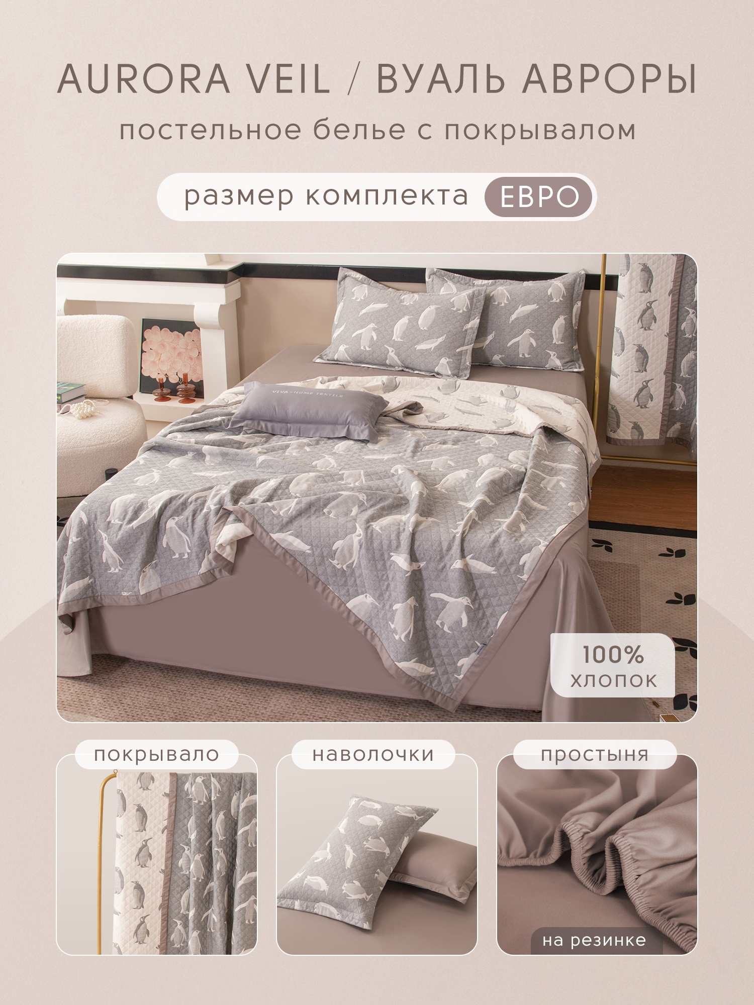Комплект постельного белья на резинке Сатин Aurora Veil/Вуаль Авроры с Покрывалом AVR001-173