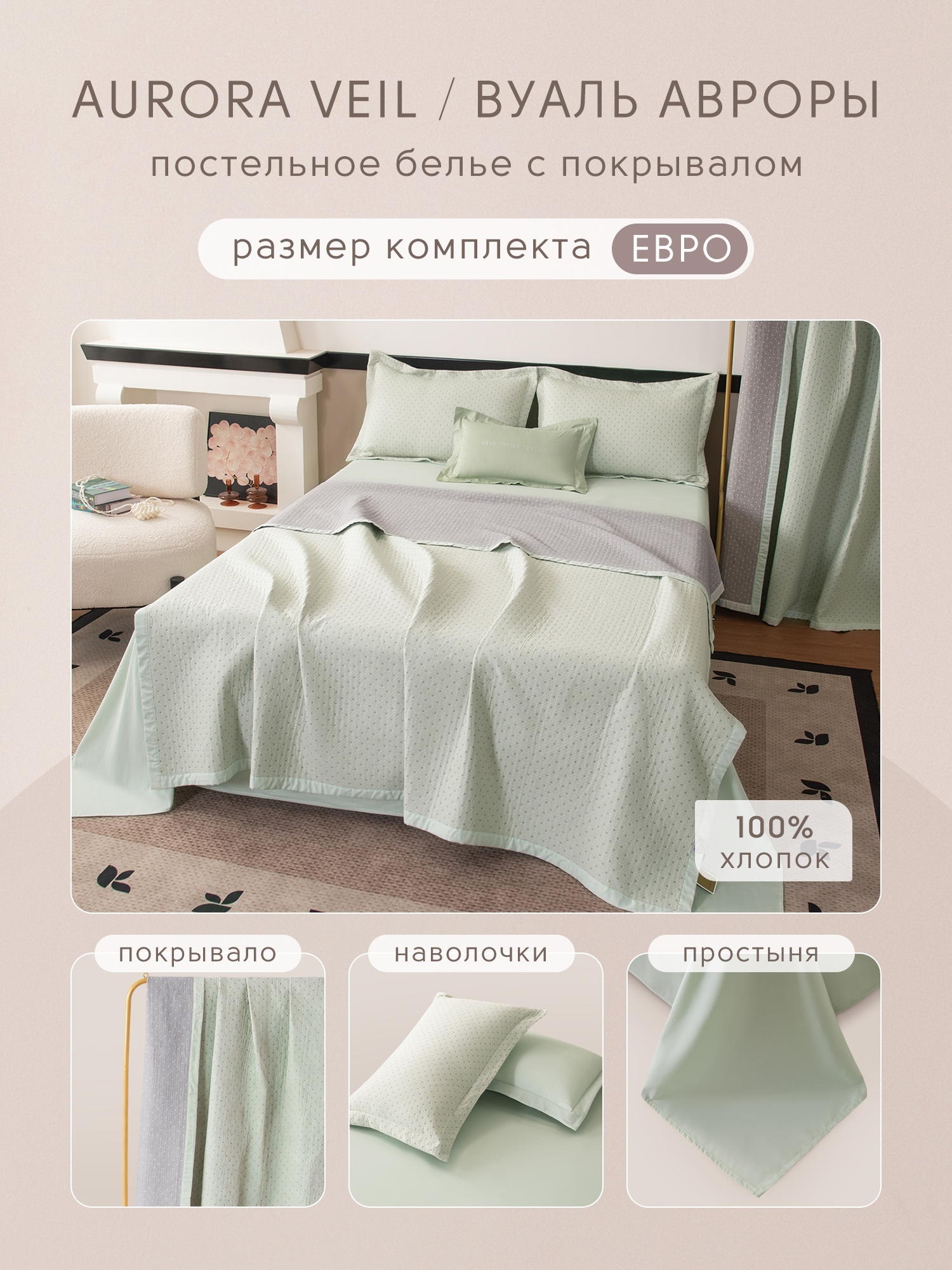 Комплект постельного белья Сатин Aurora Veil/Вуаль Авроры с Покрывалом AV005-273