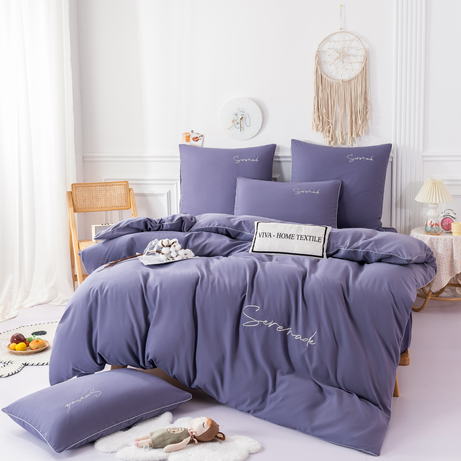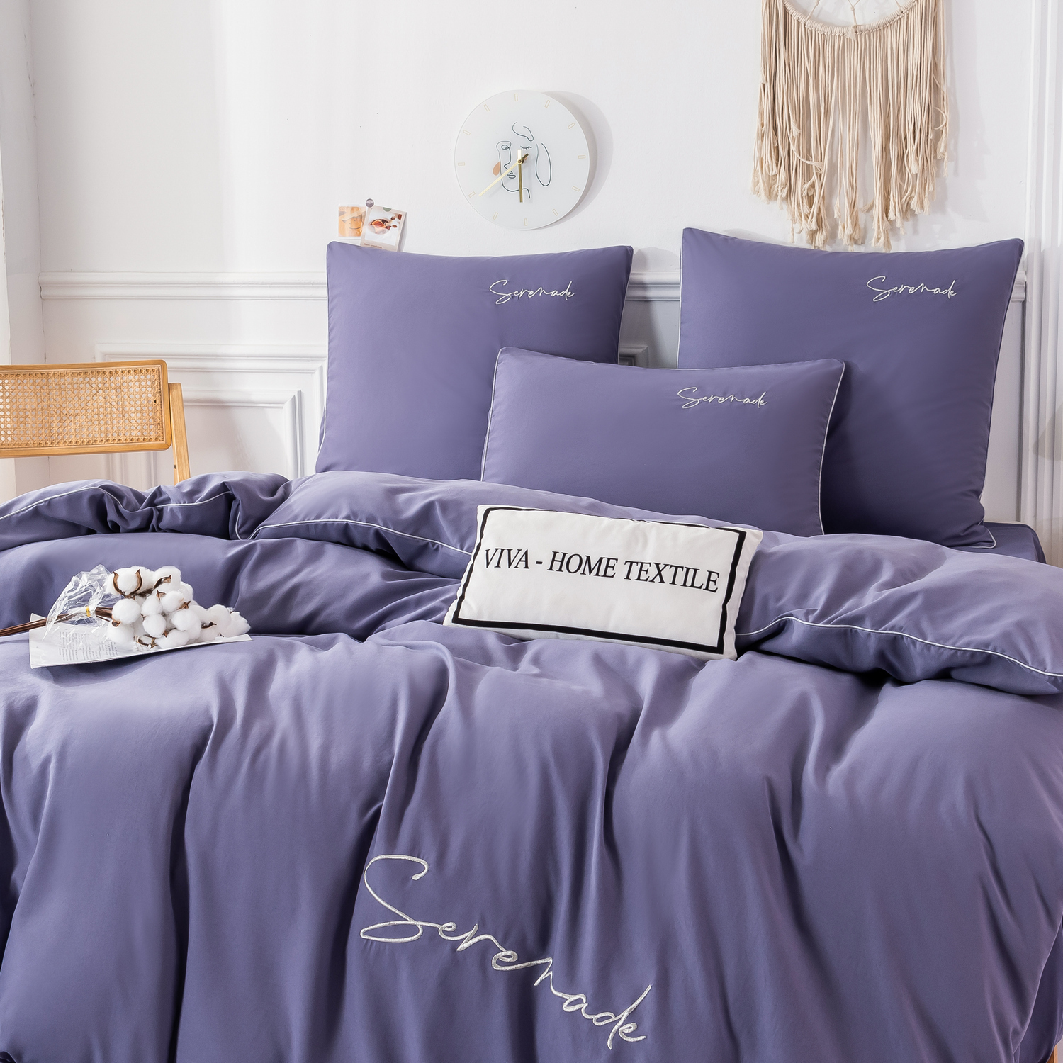 Пододеяльник и наволочки: Украшены вышивкой и кантом по периметру