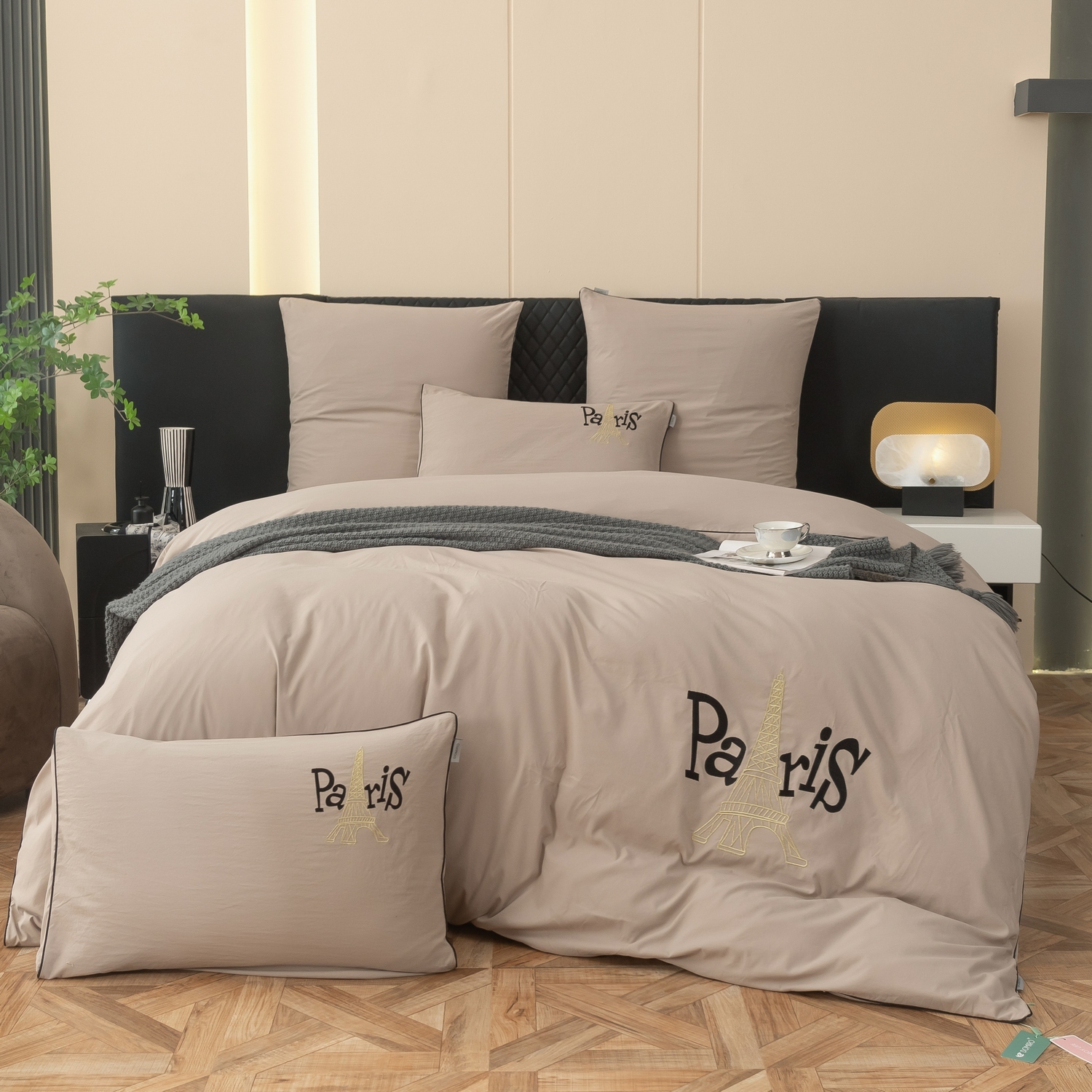 Дизайн дополняет элегантная вышивка с изображением Эйфелевой башни и надписью Paris, а изящный кант по периметру подчёркивает утончённость каждого комплекта.