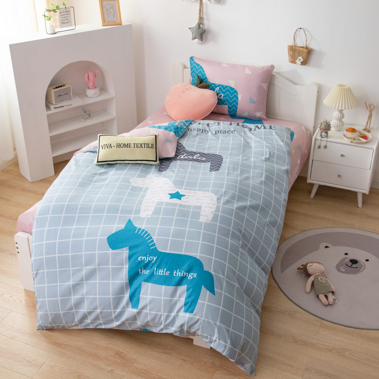 Детское постельное белье - это постельное белье из 100% хлопка наивысшего качества. Комплекты постельного белья выполнены из сатина, гладкая структура ткани очень мягкая и приятная на ощупь, но при этом плотная. При нанесении рисунка используются безопасные натуральные красители, не вызывающие аллергии. Она не линяет, практически не мнется, очень легко гладится, хорошо сохраняет форму и устойчива к частым стиркам. Плотный и прочный хлопковый сатин не притягивает пыль и не электризуется. Комплект состоит из наволочки, простыни и пододеяльника. Для более комфортного использования пододеяльник и наволочки снабжены скрытыми молниями. Простынь сшита из целого полотна без шва посередине.