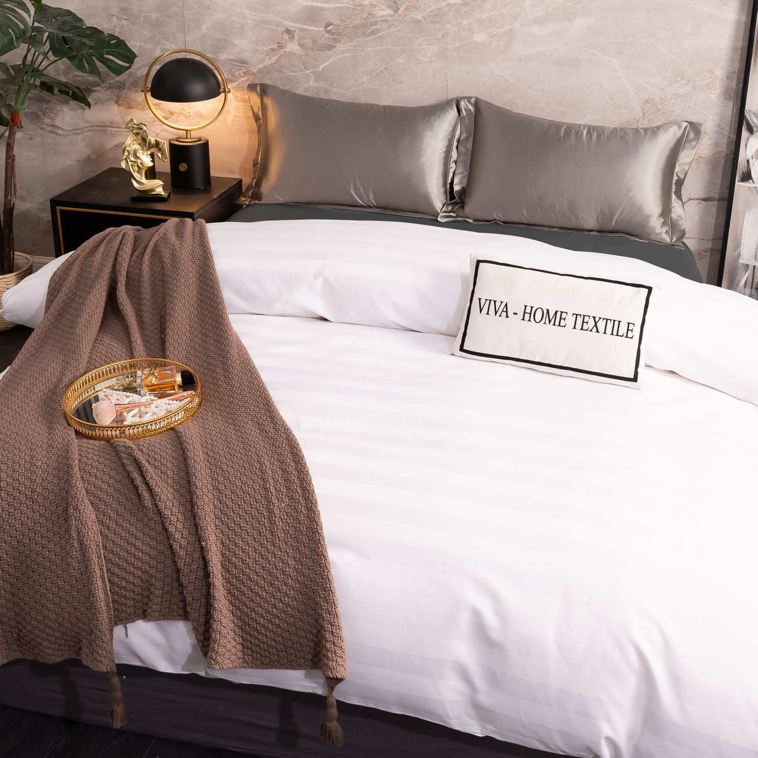 Постельные принадлежности из Страйп Сатина пользуются популярностью благодаря минималистическому стилю, напоминающему белье в номере дорогой гостиницы.