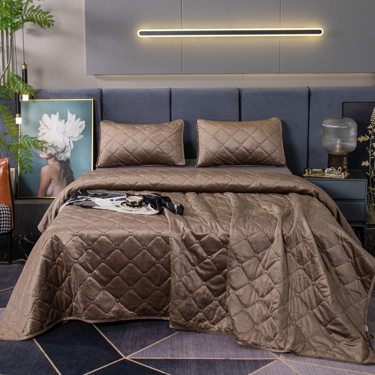 Велюровое покрывало с ромбовидной стежкой: мягкая текстура велюра и приятная цветовая гамма станут прекрасным дополнением интерьера вашей спальни. Кровать с таким покрывалом будет выглядеть стильно и дорого.