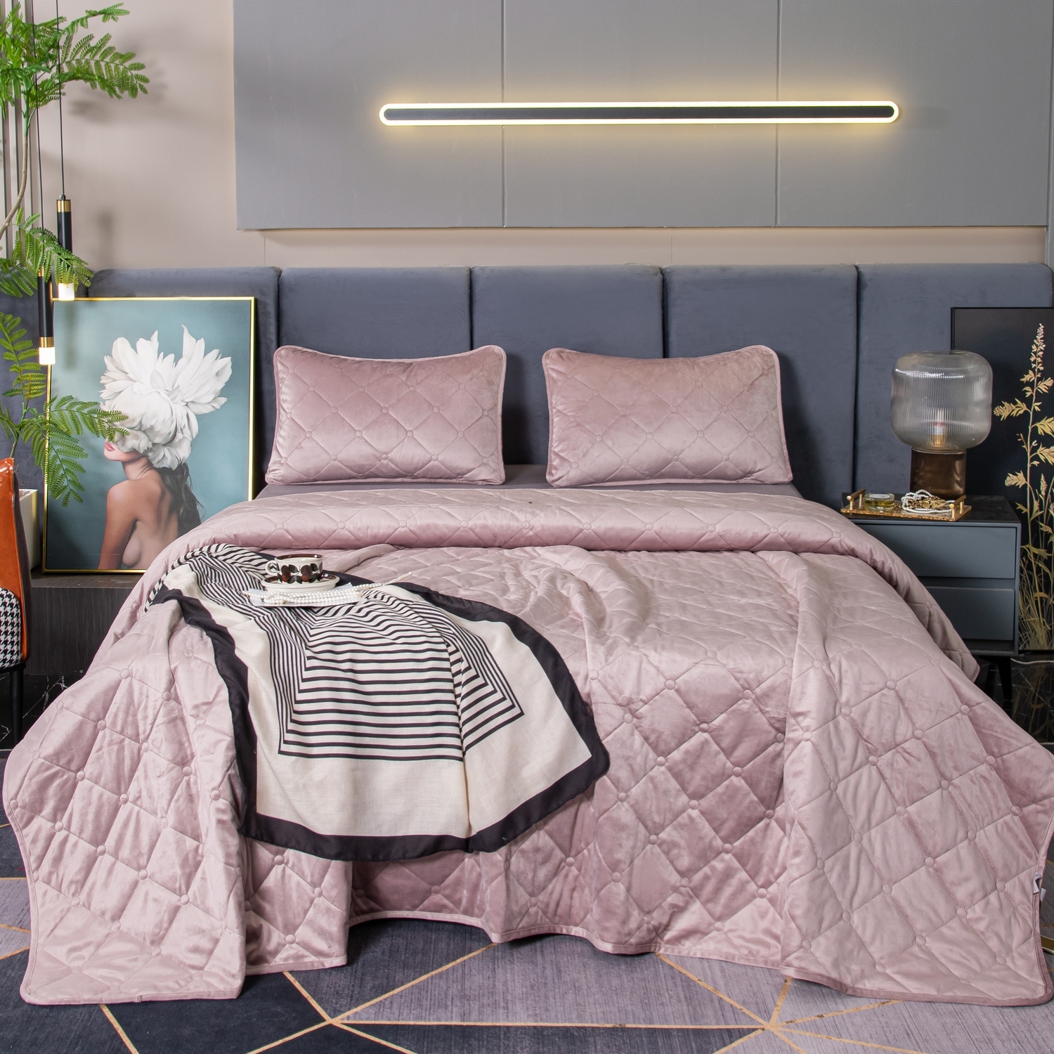 Велюровое покрывало с ромбовидной стежкой: мягкая текстура велюра и приятная цветовая гамма станут прекрасным дополнением интерьера вашей спальни. Кровать с таким покрывалом будет выглядеть стильно и дорого.