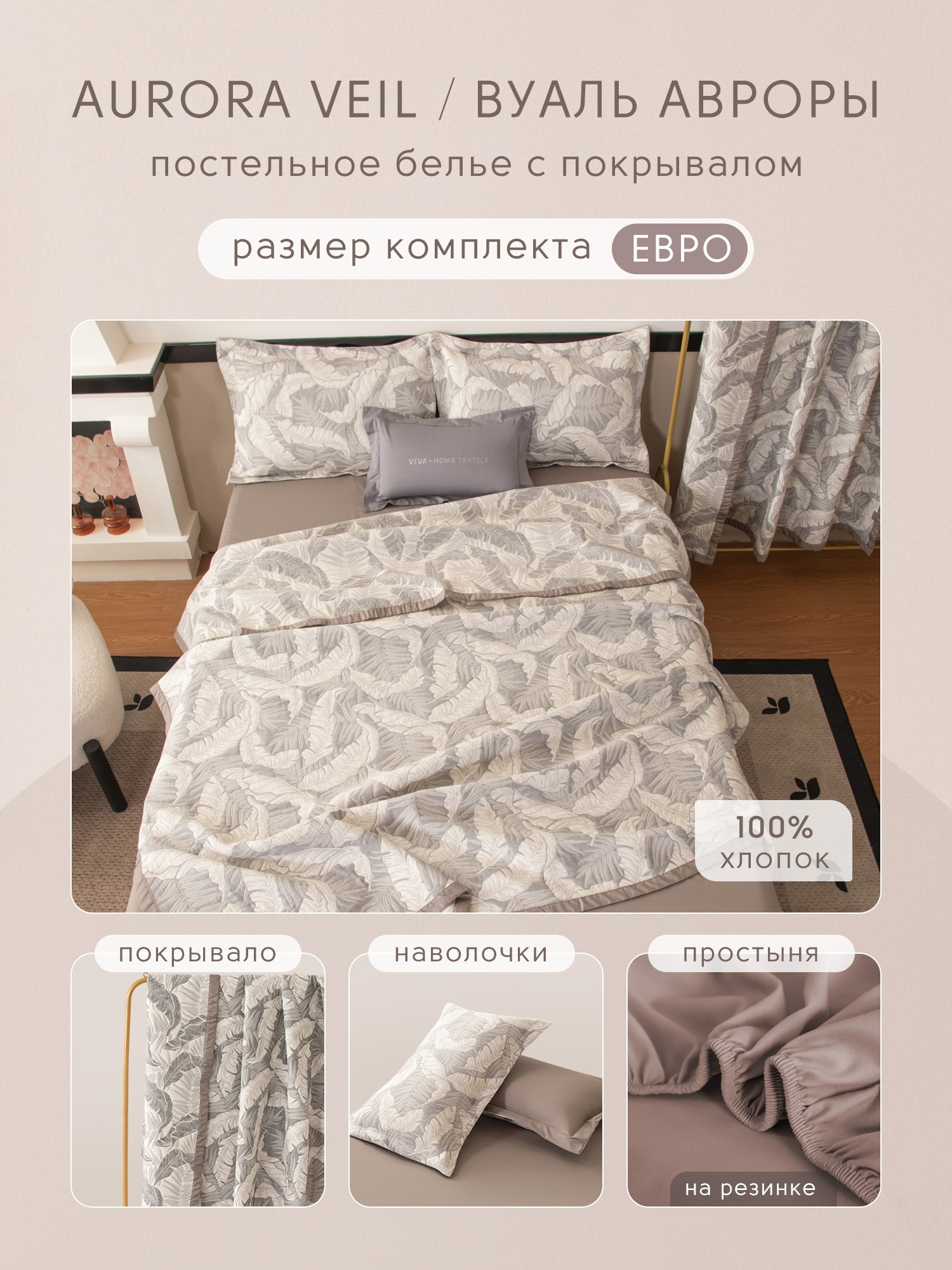 Сатин Aurora Veil/Вуаль Авроры с Покрывалом - коллекция, в которой продумана каждая деталь. Мягкое постельное бельё в комплекте с изысканным двусторонним покрывалом создаёт гармоничный, законченный образ спальни и наполняет пространство атмосферой лёгкости и уюта.