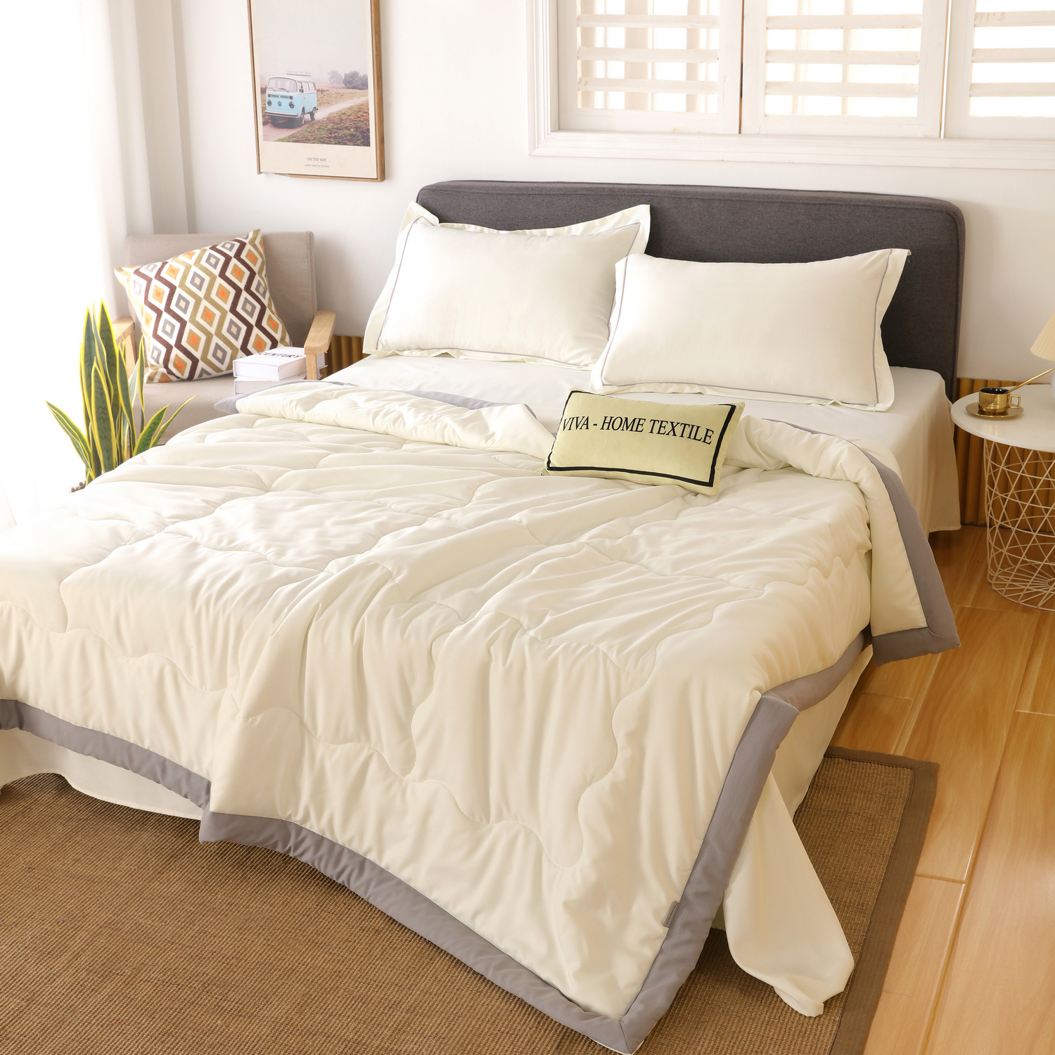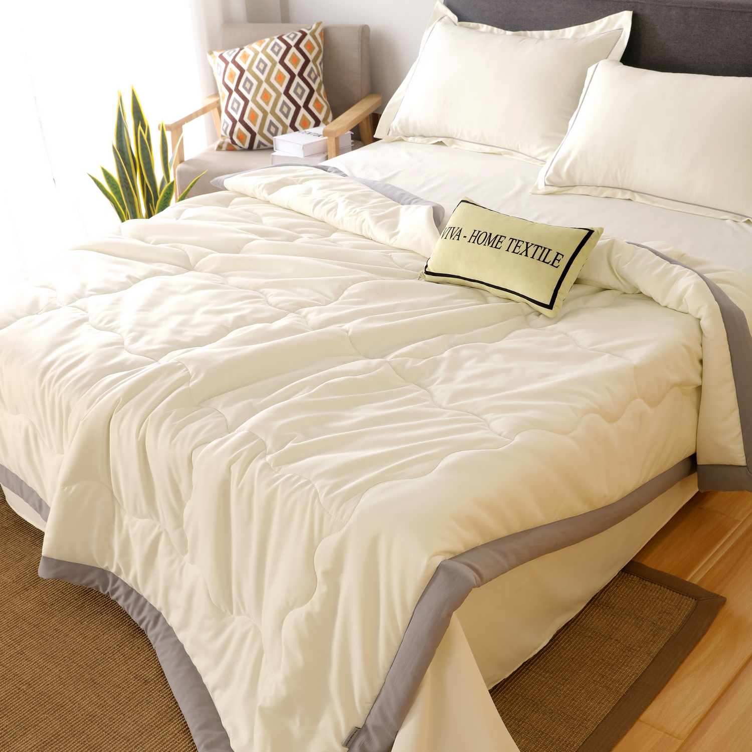 Стеганое одеяло-покрывало из бамбукового волокна прекрасно подходит для людей с чувствительной кожей. Антибактериальные свойства бамбукового волокна не снижаются даже после нескольких десятков стирок. Зимой под таким одеялом тепло и уютно, а летом, благодаря отличной воздухопроницаемости, совсем не жарко. Бамбуковые волокна прекрасно впитывают влагу и быстро сохнут благодаря пористой структуре.