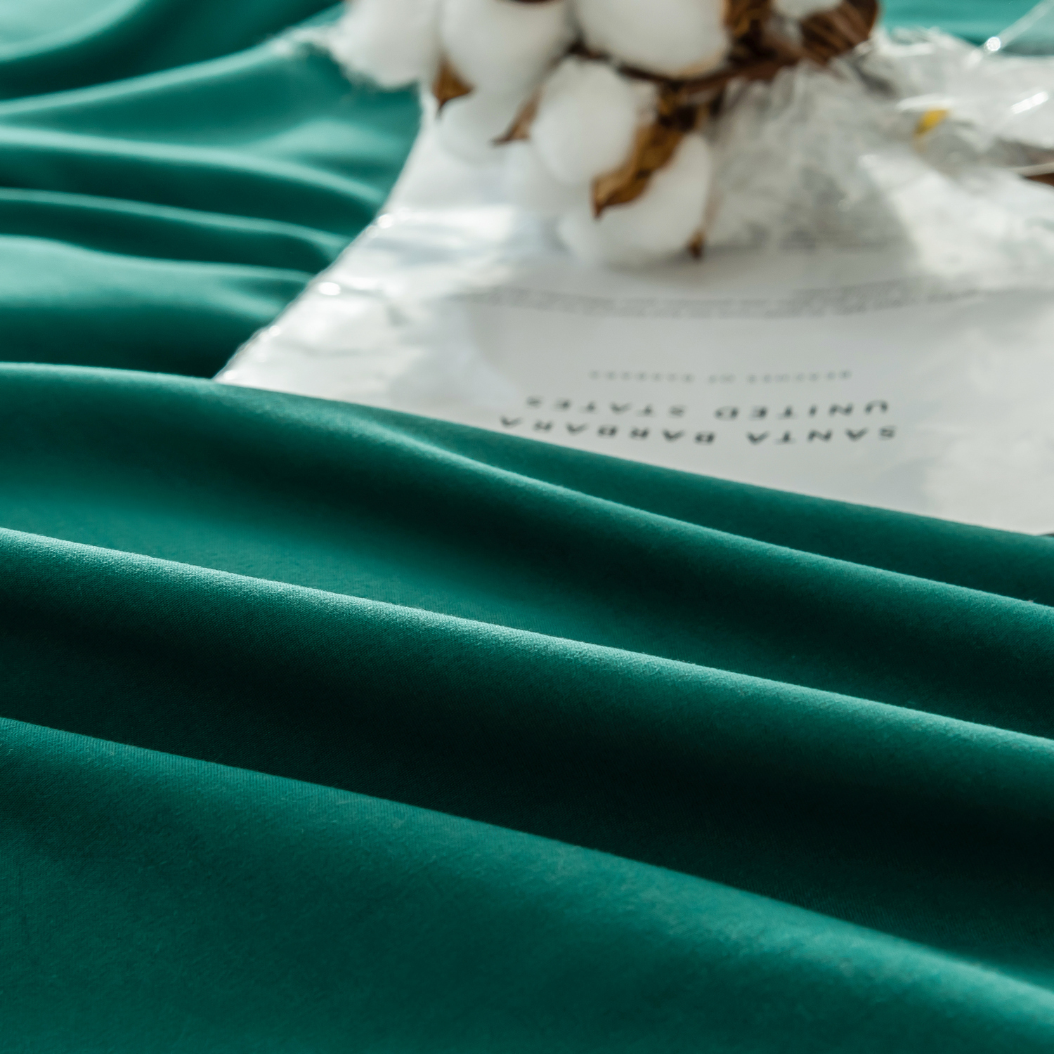 Белье изготовлено из сатина, смесовой ткани. Благодаря преобладанию хлопка в составе, ткань прекрасно пропускает воздух, создавая оптимальный микроклимат в постели. Смесовая ткань позволяет улучшить свойства белья: ткань быстро сохнет, практически не мнётся, не линяет, не садится после стирки и срок службы такого белья гораздо выше, чем у постельных принадлежностей из чистого хлопка.