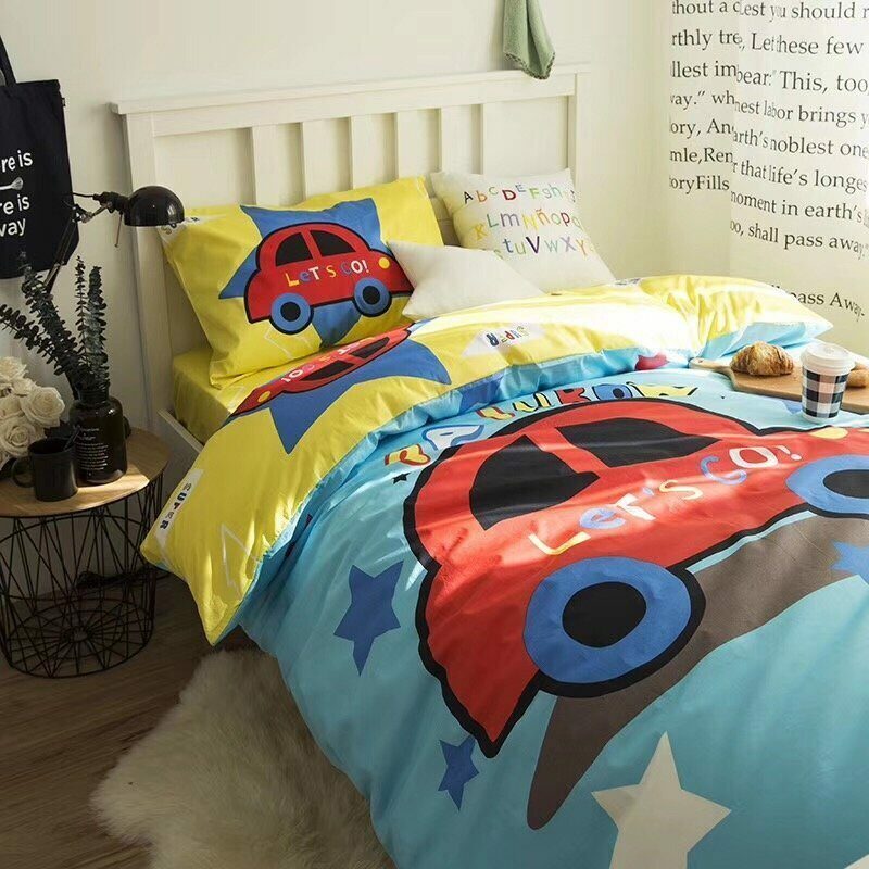 Детское постельное белье - это постельное белье из 100% хлопка наивысшего качества. Комплекты постельного белья выполнены из сатина, гладкая структура ткани очень мягкая и приятная на ощупь, но при этом плотная. При нанесении рисунка используются безопасные натуральные красители, не вызывающие аллергии. Она не линяет, практически не мнется, очень легко гладится, хорошо сохраняет форму и устойчива к частым стиркам. Плотный и прочный хлопковый сатин не притягивает пыль и не электризуется. Комплект состоит из наволочки, простыни и пододеяльника. Для более комфортного использования пододеяльник и наволочки снабжены скрытыми молниями. Простынь сшита из целого полотна без шва посередине.