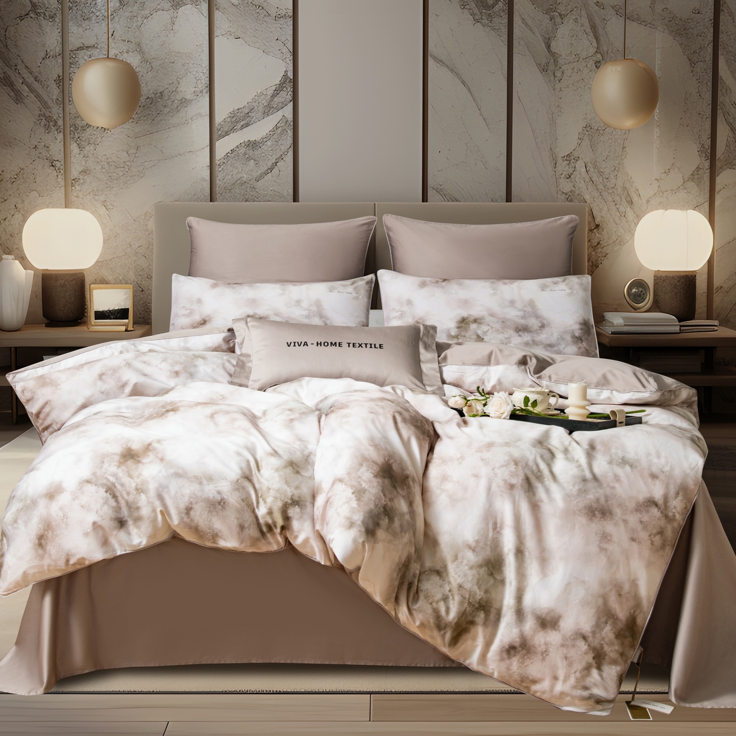 Мерсеризованный 100% египетский хлопок обладает более высокой прочностью, выдерживая до 1000 стирок, практически не мнётся и не даёт усадку, а также прекрасно сохраняет яркость и при этом не "красится". 3D печать на комплектах придает изделию необычайно насыщенные цвета и элегантный дизайн.