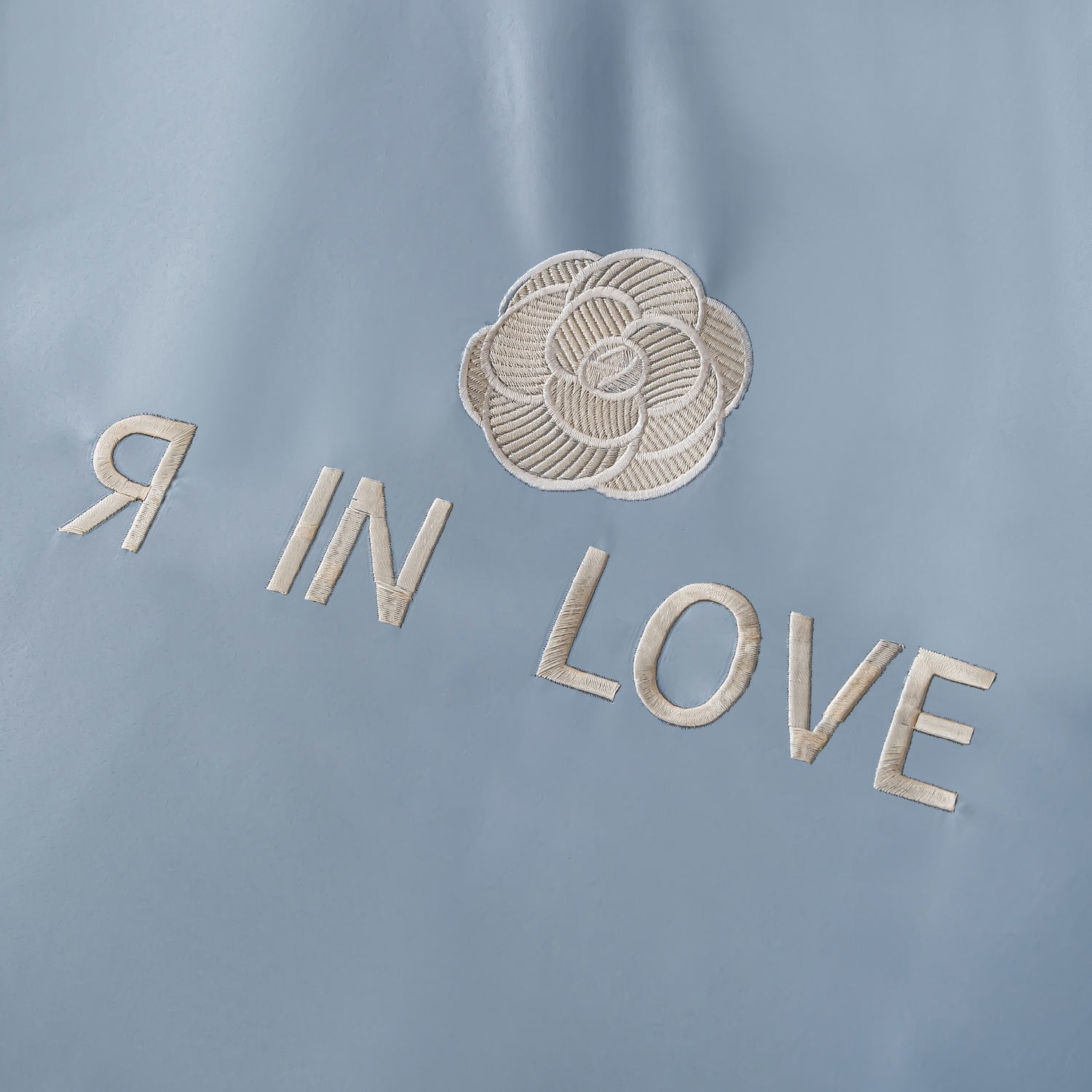 Каждый комплект украшен элегантной вышивкой с цветком и фразой "Я IN LOVE". Это придает постельному белью особый шарм, делая его прекрасным подарком для любимых.