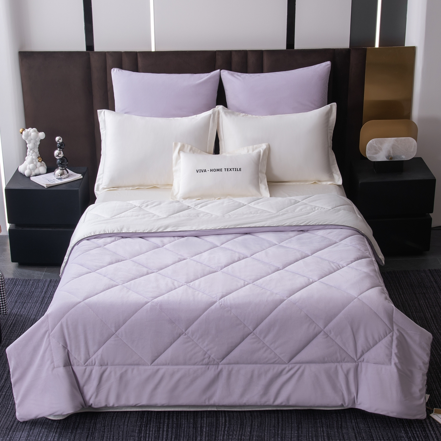 Габариты: 50 x 40 x 15 см, Цвет: Белый; Молочный; Светлый фиолетовый, Упаковка: ПВХ сумка, Тип простыни: На резинке, Транспортировочная упаковка: 51.000/41.000/24.000, Состав: Велюр/100% египетский хлопок | наполнитель одеяла- 100% эковолокно микрогель, Яндекс Видео: https-//disk.360.yandex.ru/i/Bav_sEUiZKJLfA, Яндекс Фото: https-//disk.360.yandex.ru/d/IvEmDuERoHN9FA, Яндекс Фото 3x4: https-//disk.360.yandex.ru/d/GvZA-2ssOrH9RQ, Особенность комплекта - наличие стёганого одеяла-покрывала; полностью готового к использованию. Вам не понадобится пододеяльник: одеяло сразу идёт в комплекте и идеально сочетается с постельным бельём; что делает уход за ним максимально удобным, Одеяло выполнено с изысканной геометрической стёжкой и оформлено бархатным кантом. Верхняя сторона - мягкий велюр; придающий комплекту благородный внешний вид и особую уютность. Нижняя сторона - гладкий сатин из 100% египетского хлопка; отличающийся особой прочностью; шелковистым блеском и естественной воздухопроницаемостью. Наполнитель - современное 100% эковолокно микрогель: лёгкий; гипоаллергенный материал; который сохраняет форму даже после многократных стирок. Зимой под таким одеялом тепло и комфортно; а летом - свежо и легко; благодаря отличной циркуляции воздуха, В комплект входят четыре наволочки: 50x70 см (2 шт) с запАхом (кармашком); выполненные из сатина 100% египетского хлопка; с ушками и широким кантом по периметру; 70x70 см (2 шт) на молнии - верх из мягкого велюра; низ из сатина 100% египетского хлопка; оформлены бархатным кантом, Ткань компаньон: Одеяло и наволочки 70x70 с разных сторон разной расцветки и ткани; наволочки 50x70 однотонные; простыня такого же цвета; как низ одеяла, Ткань: Сатин/Велюр, Плотность: 150 гр/м2 (сатин) / 240 гр/м2 (велюр), Метод окрашивания: 3D окрашивание (сатин), Одеяло-покрывало (стеганое): 100% эковолокно микрогель (наполнитель), Наволочки 50x70: Украшены широким кантом по периметру, Наволочки 70x70: Украшены бархатным кантом по периметру, Одеяло-покрывало: 200*220 см 1 шт. (стеганое), Простыня: (180/160/140)*200*25 см 1 шт. (на резинке), Наволочки: 50*70 см 2 шт. (с запАхом) и 70*70 см 2 шт. (на молнии)